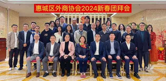 2024年2月23日,协会在惠州福满楼举行一年一度的新春团拜会。惠城区委常委、宣传部部长贺海浪,惠城区委统战部常务副部长、区台港澳事务局负责人叶伟冰,我会会长王玉珍,名誉会长洪光汜,常务副会长陈伟明、杨伟定、刘明君,副会长谭永权、刘崇健、林启昌,青委副主席林启源等与城区各镇街经济办领导欢聚一堂,喜迎新春、共话发展。