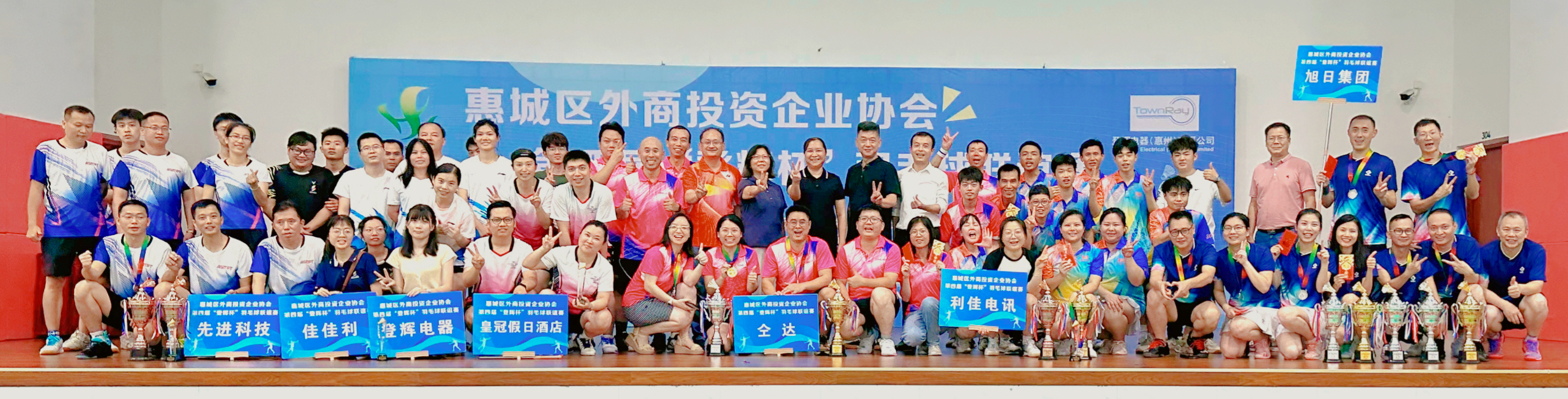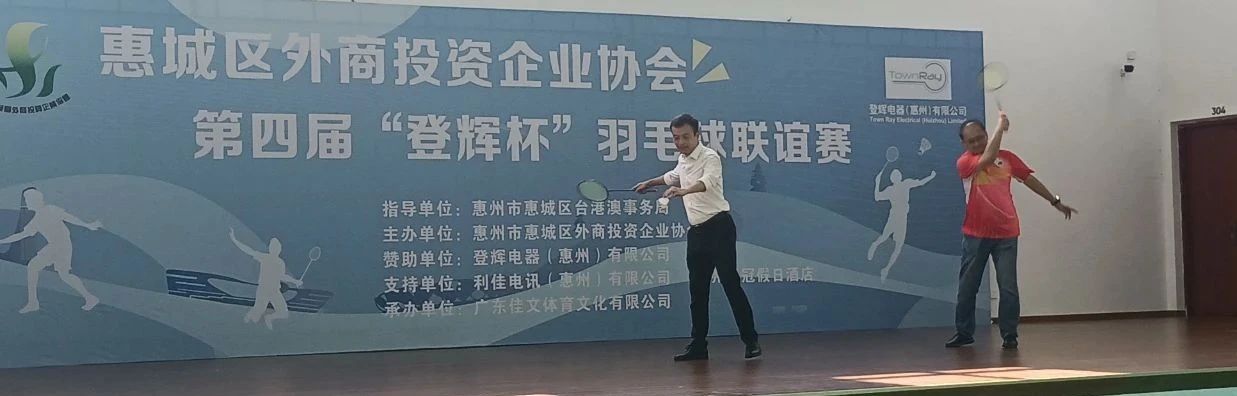 为丰富、活跃协会会员企业员工的业余文化生活,增进各会员企业之间的交流与沟通,增加协会的凝聚力和向心力,2023年8月26日,由我会主办,惠城区台港澳事务局指导,登辉电器(惠州)有限公司冠名赞助,利佳电讯(惠州)有限公司、惠州皇冠假日酒店大力支持的惠城区外商投资企业协会第四届“登辉杯”羽毛球联谊赛,在惠州工程职业学院体育馆举办。