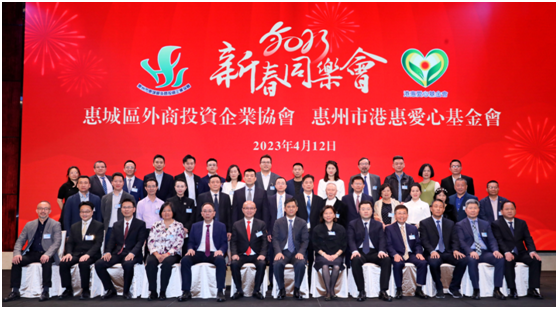 2023年4月12日下午6点,惠城区外商投资企业协会、惠州市港惠爱心基金会2023年新年同乐会在惠州皇冠假日酒店举行。惠城区区委书记曹洪彬,区委副书记、区长翟树宇,区人大常委会主任凌战,区委副书记、政法委书记邹运章,区委常委、统战部部长何碧光,区委常委、区政府副区长张向城,区人大常委会副主任田勇辉、黄友良,区政府副区长颜明光、姚航伟,区政协副主席刘红光、甄红;惠州市人社局邬旻亮副局长,惠州市侨联党组成员、三级调研员周伟清,惠州市商务局四级调研员许萃苓及惠城区各职能部门领导及各友好商会负责人,以及协会、基金会全体理事会成员和全体会员代表共500余人出席了晚会。