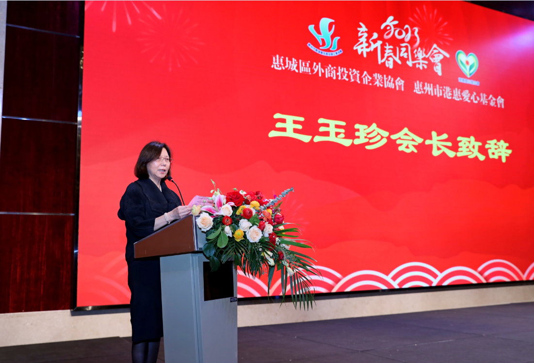 王玉珍会长致欢迎辞,对莅临晚会的领导和嘉宾表示热烈欢迎。她表示,协会的发展壮大离不开惠城区委、区政府的亲切关怀和各相关职能部门的大力支持,协会以服务会员、繁荣惠城为己任,将继续围绕“服务会员”的宗旨,提升协会的服务功能,加强政企沟通,促进会员企业在惠城区经济建设中发挥积极作用,为惠州的经济繁荣贡献一份力量。