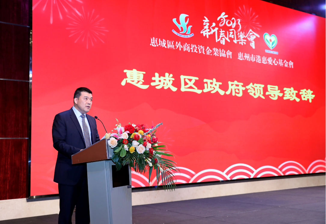 晚会由惠城区外商投资企业协会第九届理事会常务副会长、惠州市港惠爱心基金会主席陈伟明先生致祝酒辞,与全体嘉宾举杯同庆。
