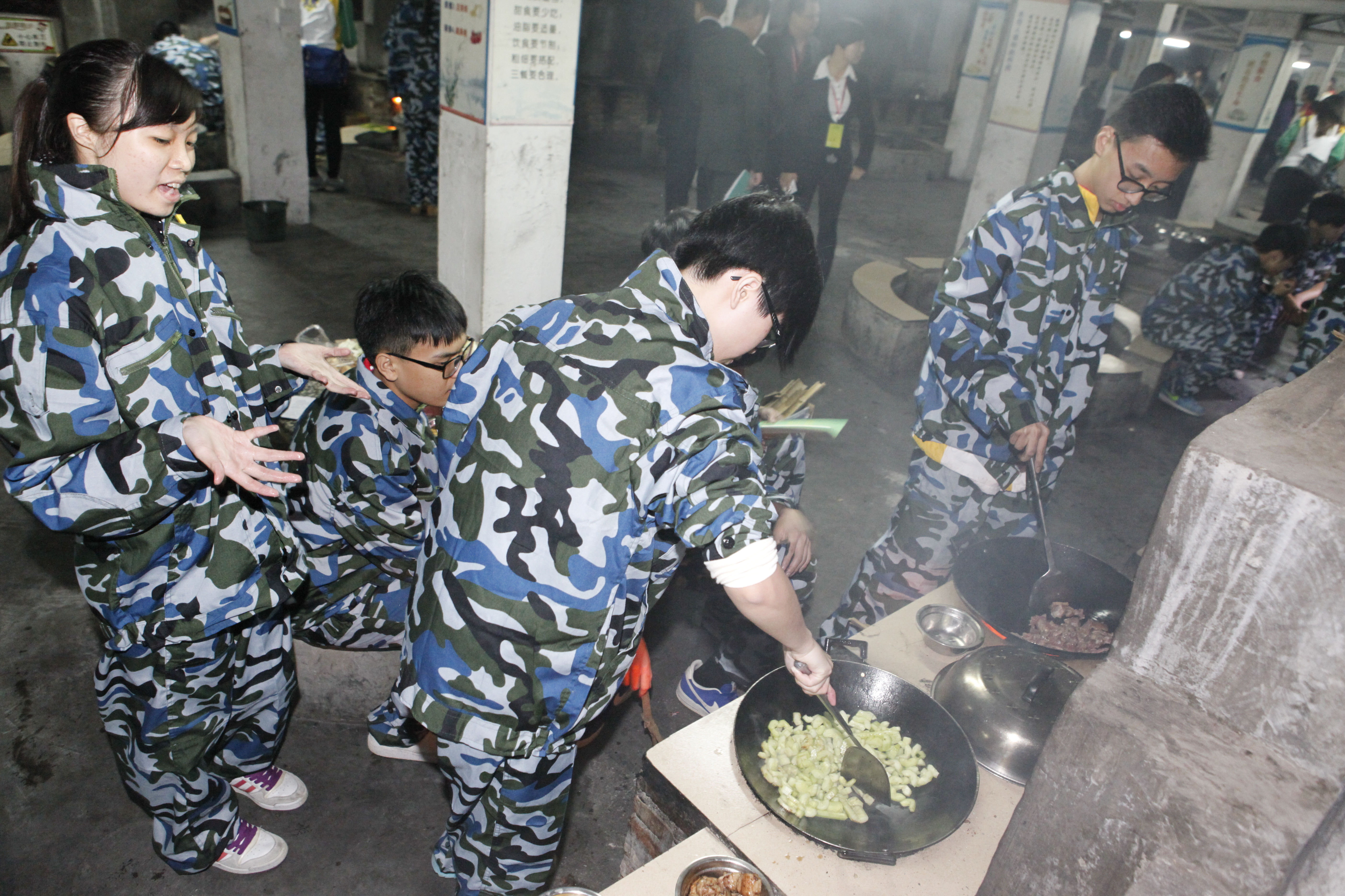 午餐后在惠城区外商投资企业协会何禹霏副会长和侨界青年联合会的10个代表带领下来到了惠城区伟鸿中小学生综合实践活动教育基地。在这里,学生们玩了“野外定向”和“大战锅碗瓢盘”。香港学生与10个侨青代表打成一片,顺利完成游戏“野外定向”并取得战利品—各种蔬菜(是“大战锅碗瓢盘”的材料),学生们洗、切、煮,干得热火朝天。餐后还清洗碗筷、场地。学生们的团结合作精神、独立动手能力获得基地教官大力赞赏!