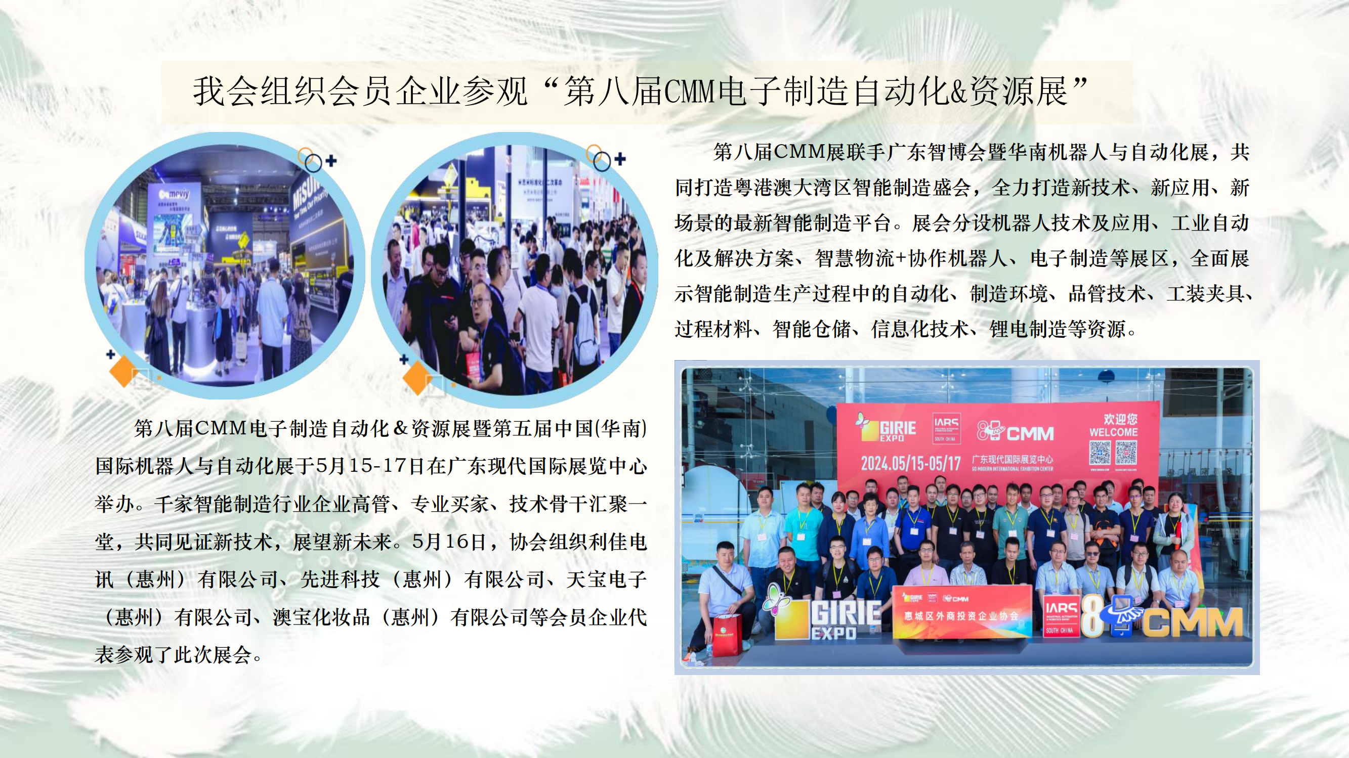 我会组织会员企业参观“第八届CMM电子制造自动化&资源展”