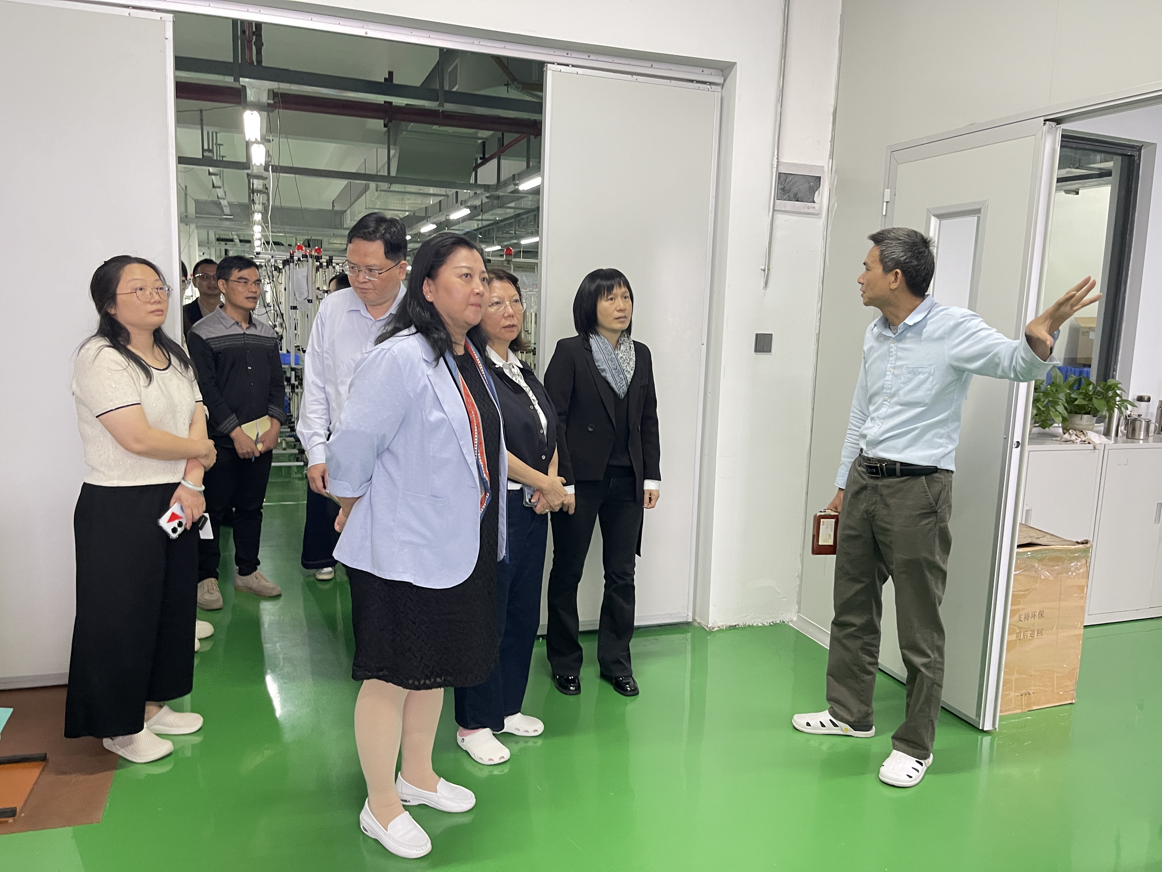 座谈会后,费霞会长一行在王玉珍会长的陪同下,参观了企业生产车间。一行人结合生产现场实际情况,与企业负责人就生产运营、技术研发等方面内容展开沟通,进一步夯实了后续对接的基础。