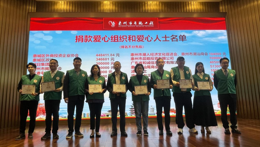 惠城区外商投资企业协会秉承热心慈善事业的优良传统,在全体会员企业的爱心支持下,已经连续7届参与惠州市耳聪工程项目,累计捐赠善款1,920,557元,为困境耳疾患者献出一份爱心与关怀。接下来我协会将会继续积极传递和弘扬社会正能量,为健康惠州、幸福惠州、文明惠州城市建设添砖加瓦。