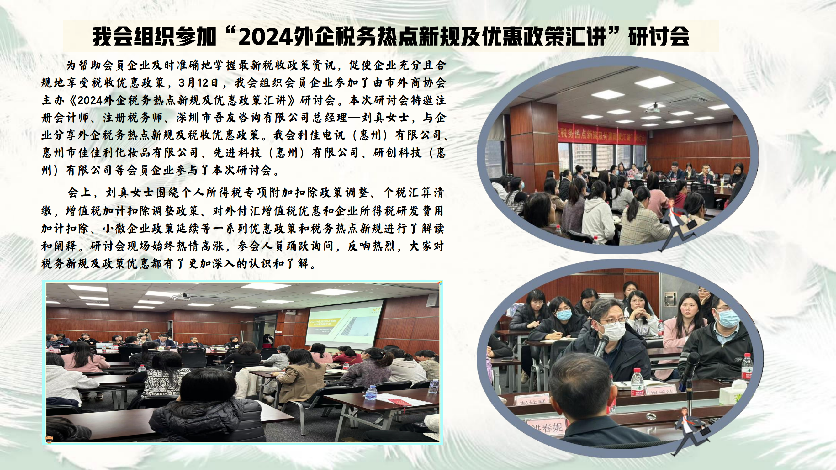 我会组织参加“2024外企税务热点新规及优惠政策汇讲”研讨会