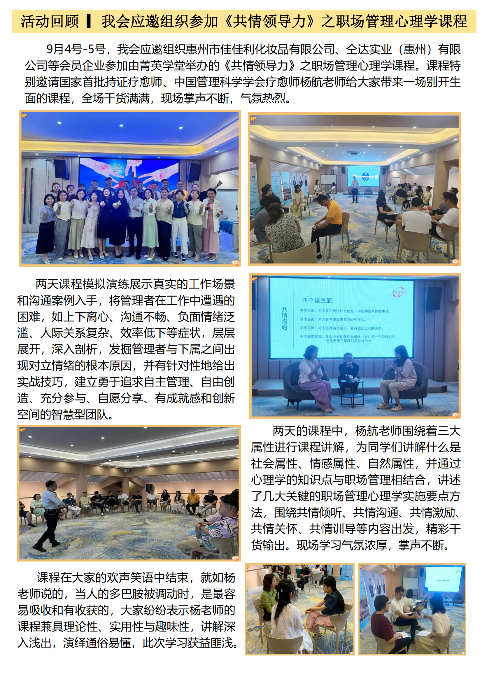 活动回顾 ▎我会应邀组织参加《共情领导力》之职场管理心理学课程